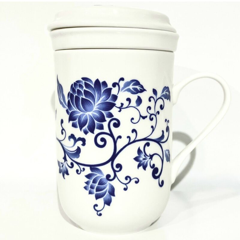 台湾の茶器専門店「風清堂」が手がける、伝統的な青花柄の茶こし付きマグカップです。白磁の器に咲く青の花々は、まるで静かな水面に映る風景のよう。繊細な筆致で描かれた花と蔓は、日々の喧騒を忘れさせる穏やかな時間をもたらします。