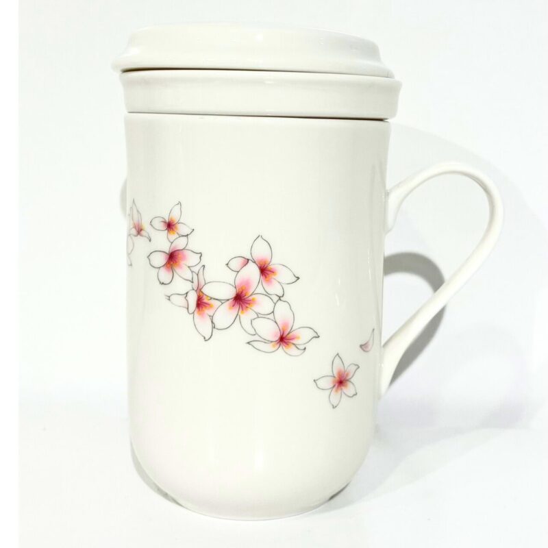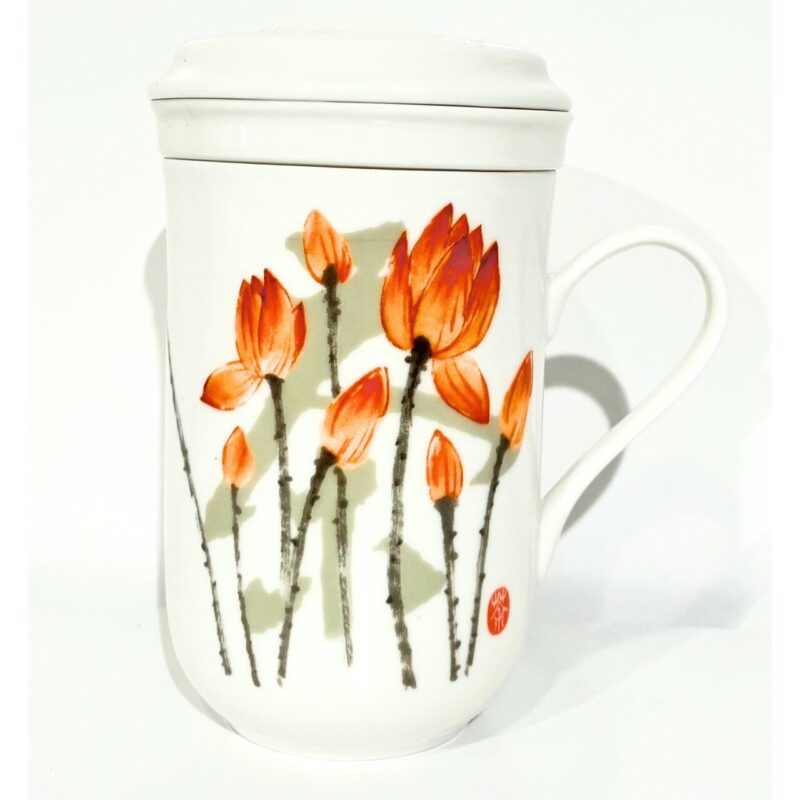 台湾の茶器専門店「風清堂」が手がけた、茶こし付きマグカップ。白磁の器に描かれた朱色の花は、風に揺れる草花のように、静かな余韻を残します。その柔らかな筆致と余白の美が、空間に静けさと品格を添えます。
